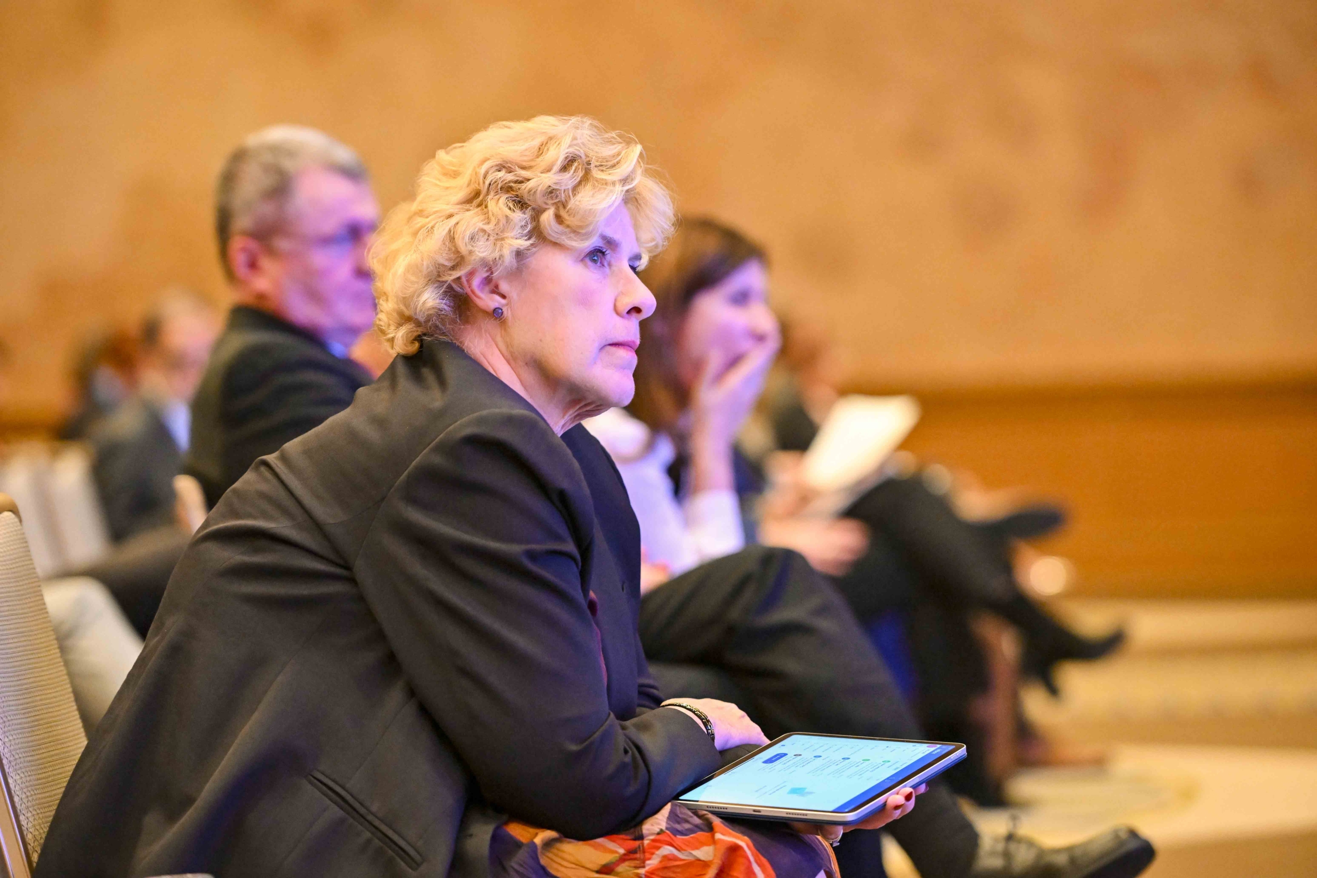 The IAIS was joined by Gillian Tett, columnist and editorial board member at the Financial Times. She shared her views on global trends impacting the insurance industry, including that cyber and climate are two risks that will shape 2024.